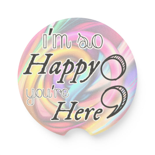 Car Coaster Set, Absorbent Cup Holder Coasters, Swirly Pastel Design, Survivor | I'm So Happy You're Here Semicolon | Free Shipping