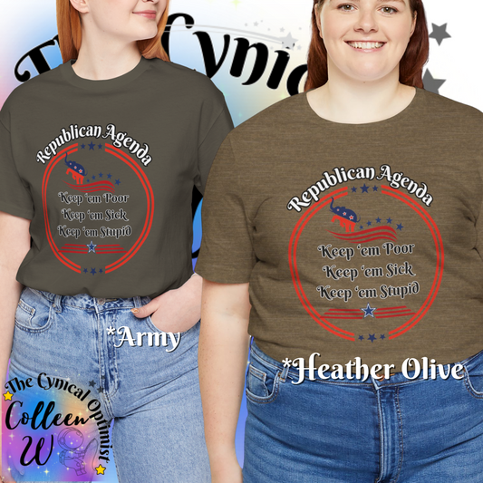 Funny Unisex Tee - "Keep 'em Poor, Keep 'em Sick, Keep 'em Stupid" - Perfect for Political Humor Lovers