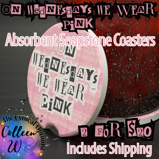 Mean Girls Car Cup Holder Coaster | Absorbent Soapstone Coaster | On Wednesdays We Wear Pink | Pink Plaid Car Accessory Gift | Free Shipping