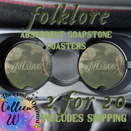 folklore Car Coaster Set | Absorbent Soapstone Cup Holder | Swiftie Gift