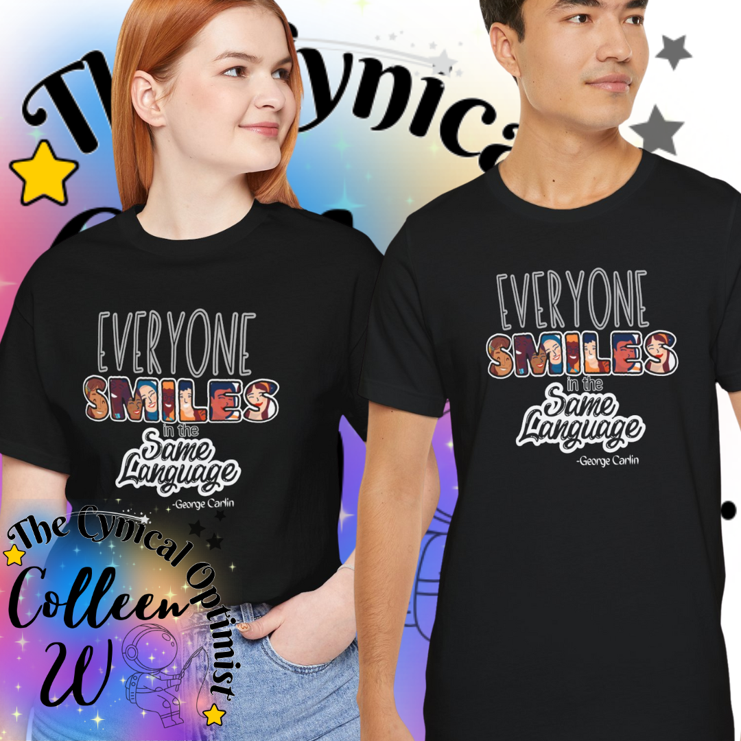 Everyone Smiles in the Same Language Unisex Tee, Positive Vibes T-Shirt, Gift for Friends, Casual Wear, Everyday Comfort, Joyful Apparel