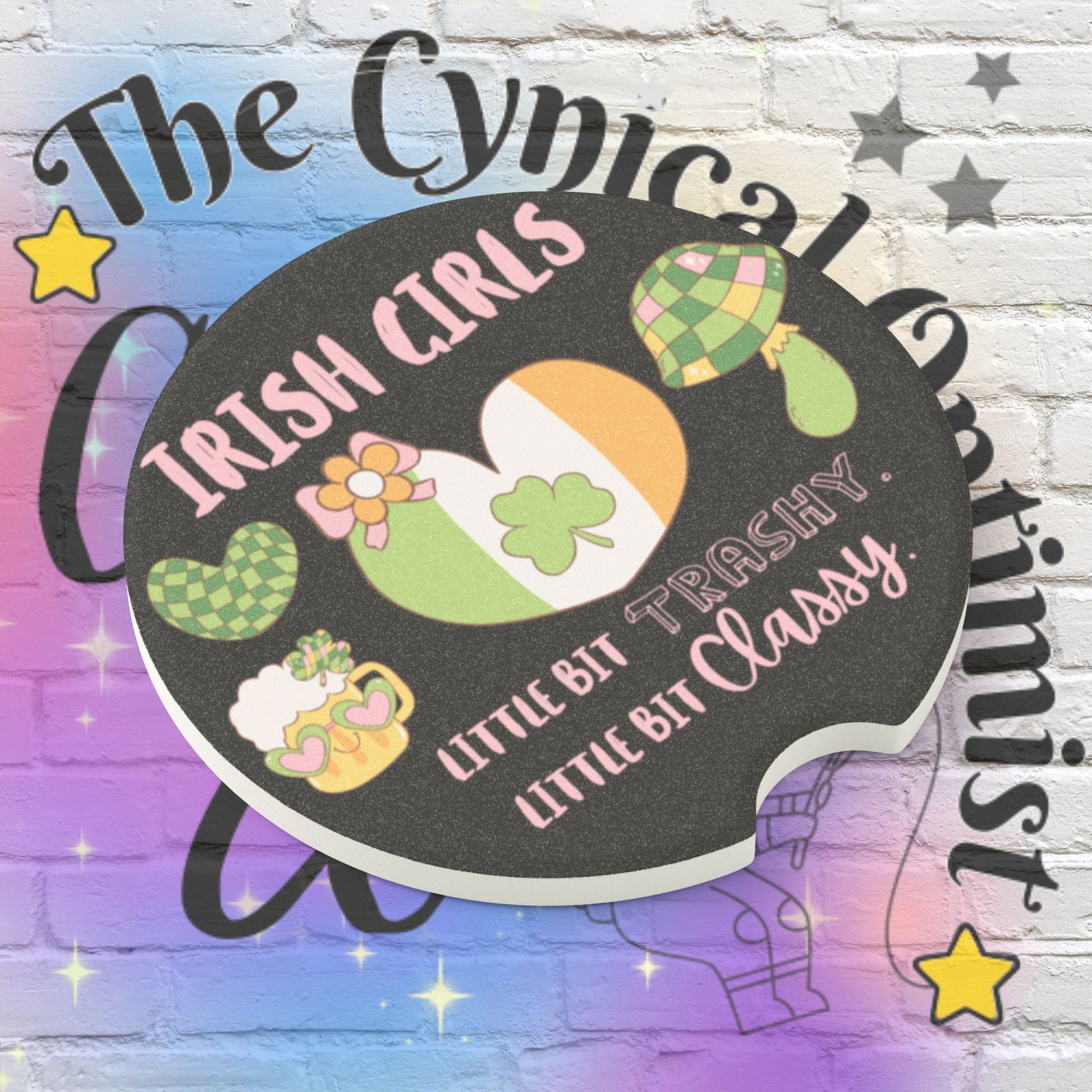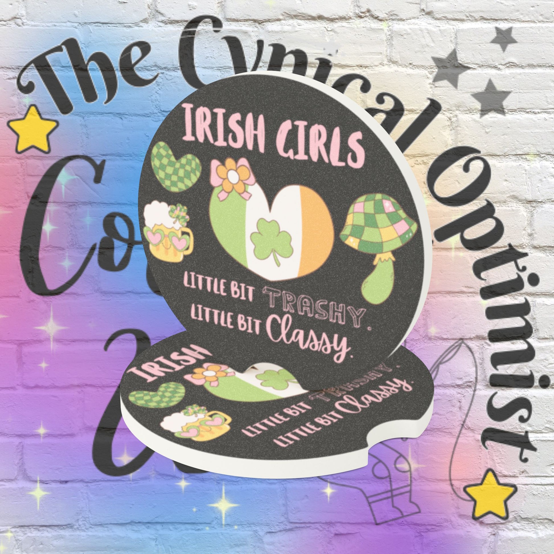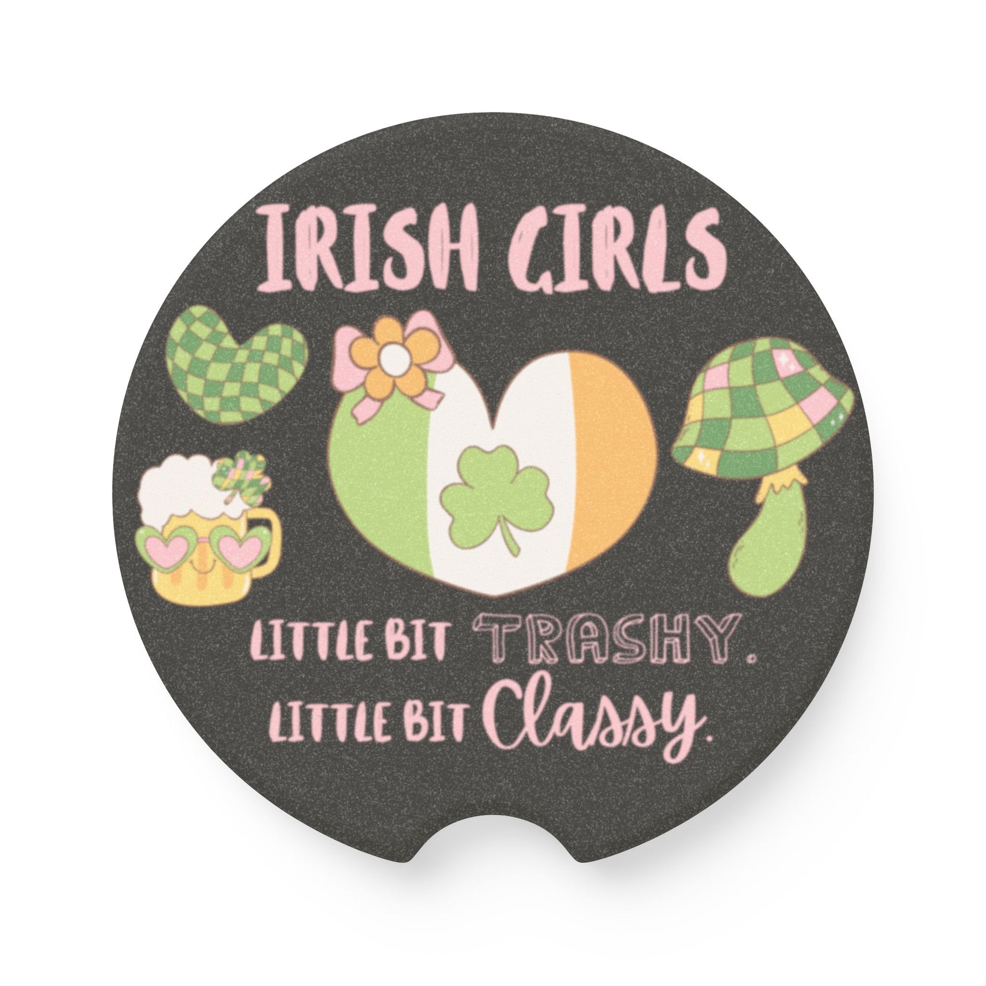 Irish Girls Trashy & Classy Car Coaster - St Patrick's Day Shamrock Beer Soapstone
