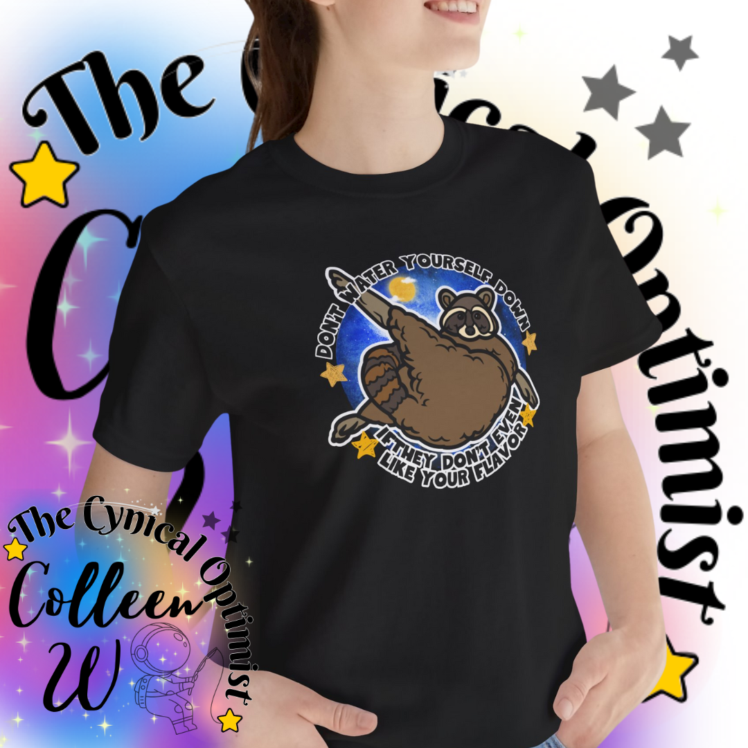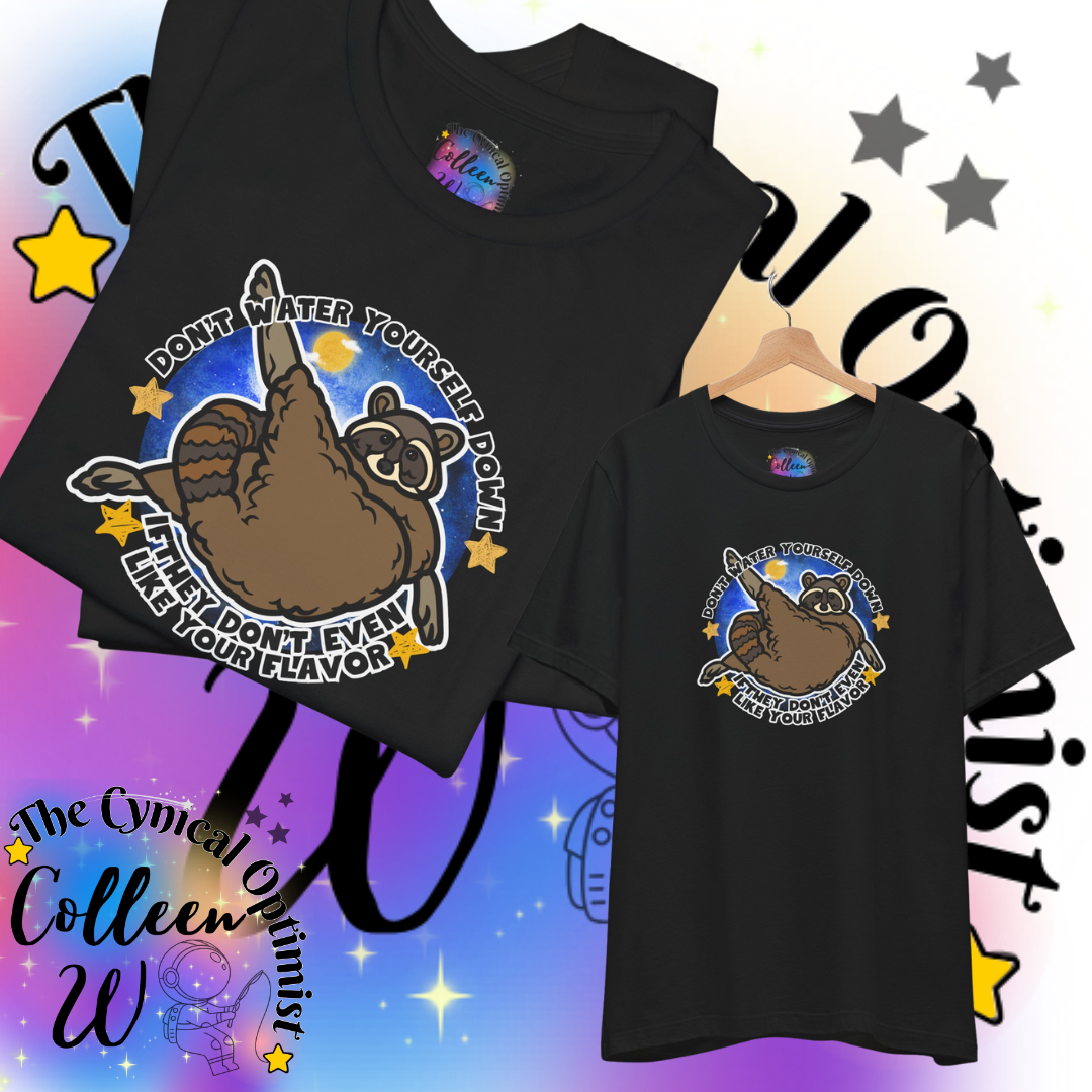 Motivational Unisex Jersey Tee, Self Love, Raccoon Lover Gift, Casual Wear, Birthday Gift | Don't Water Yourself Down | Free Shipping