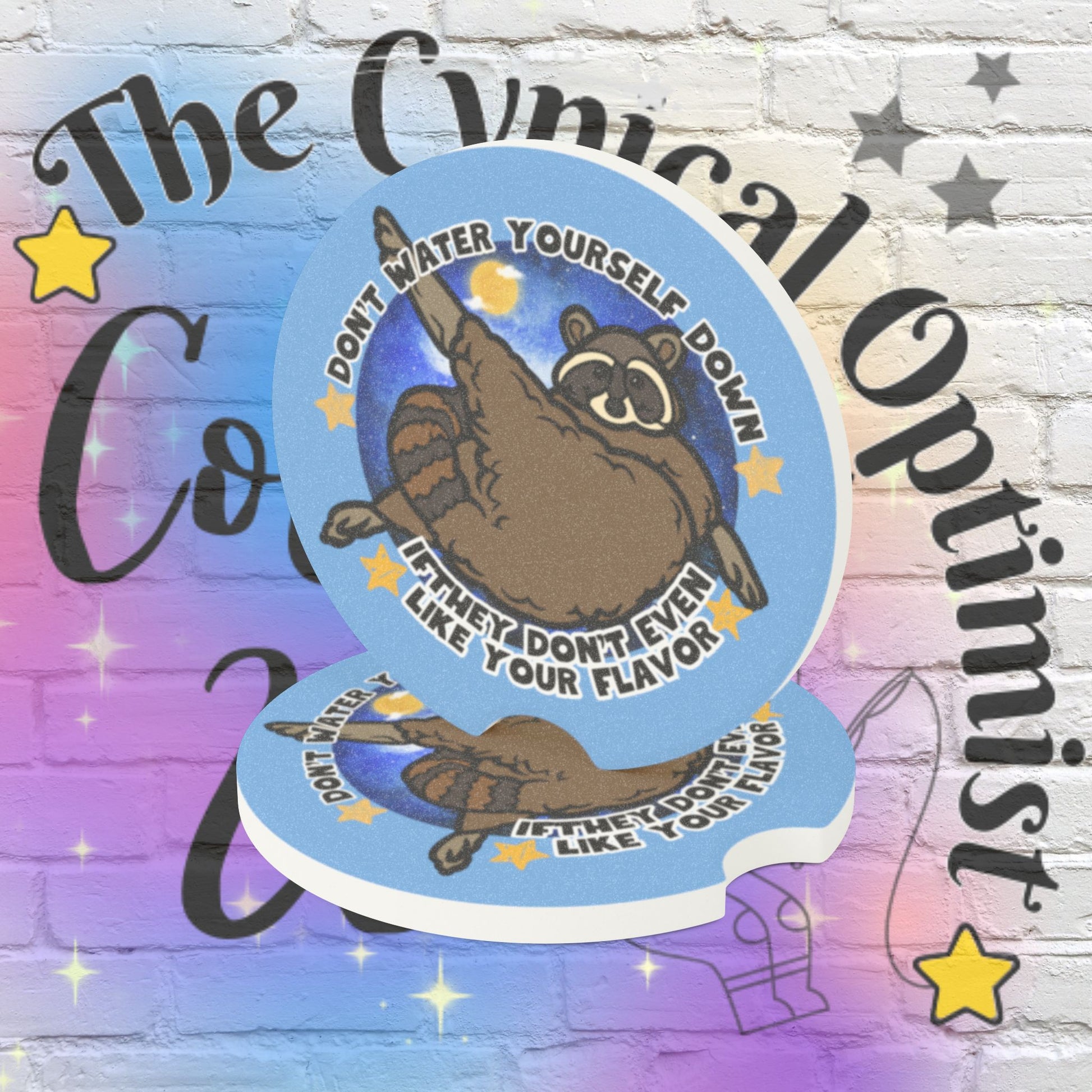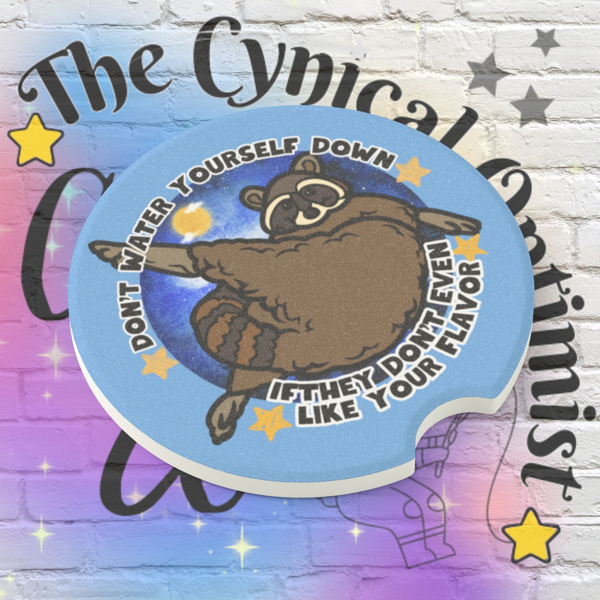 Bring a touch of whimsy and empowerment to your car with this Raccoon Soapstone Car Coaster featuring the quote Don't Water Yourself Down If They Don't Even Like Your Flavor in playful typography. Keep your cup holders stylish and protected with this unique accessory that is both functional and uplifting. Add a fun and empowering vibe to your daily commute with this eye-catching coaster! Crafted from highly durable, washable and absorbent soapstone, these car coasters blend custom looks and functionality in one neat package for every car. This must-have car accessory absorbs all moisture from your cold or hot en-route drinks and looks perfect in any car interior. Choose between 1pc, 2pcs to match your commuting needs. .: Material: 100% soapstone .: Size: 2.6″ × 2.6″ (6.6cm × 6.6cm) .: Available as 1 piece, or a set of 2 .: Absorbs condensation .: One-sided print .: Matte finish .: Removable “Made in China” sticker on the bottom .: Please note: The coaster fits in MOST vehicle drink holders