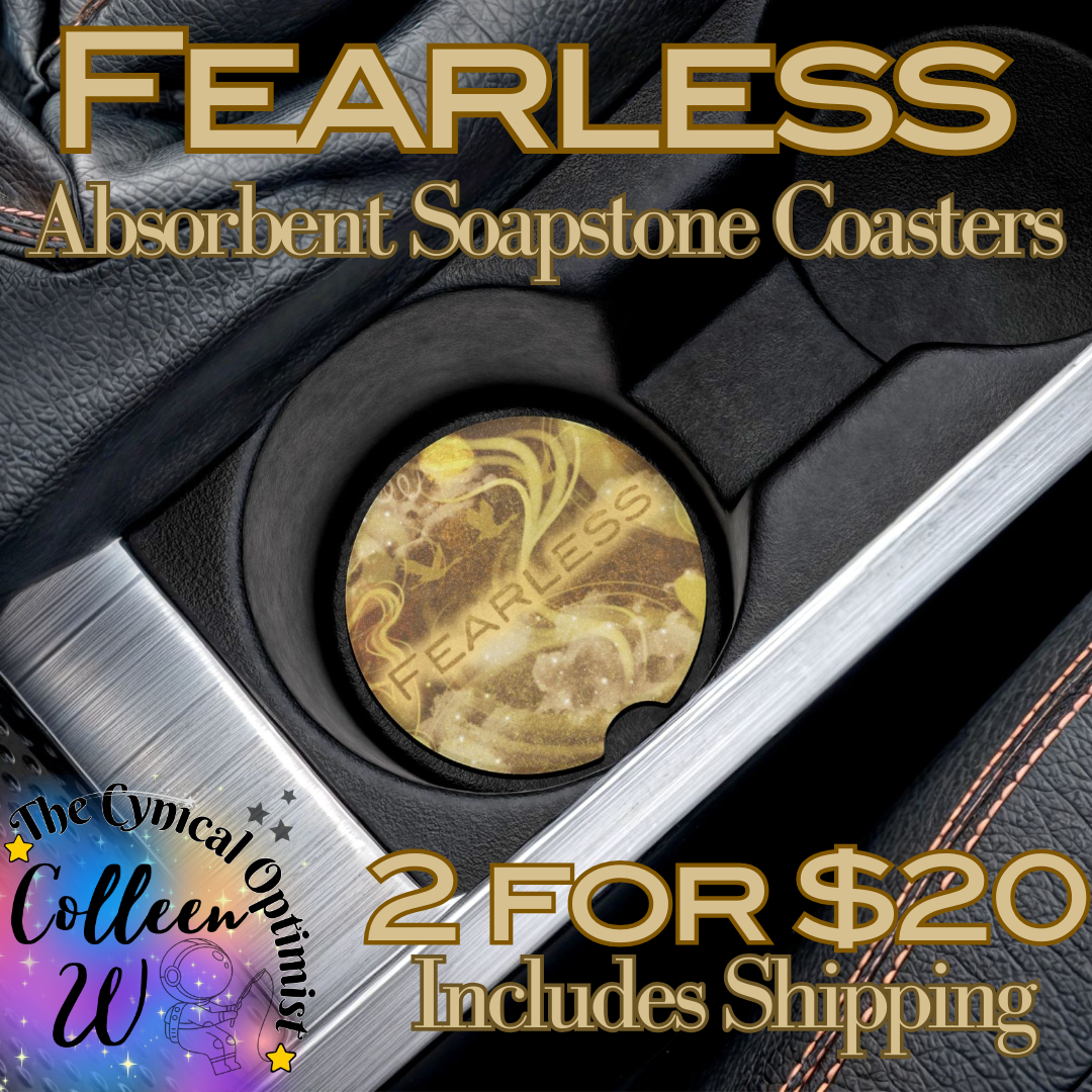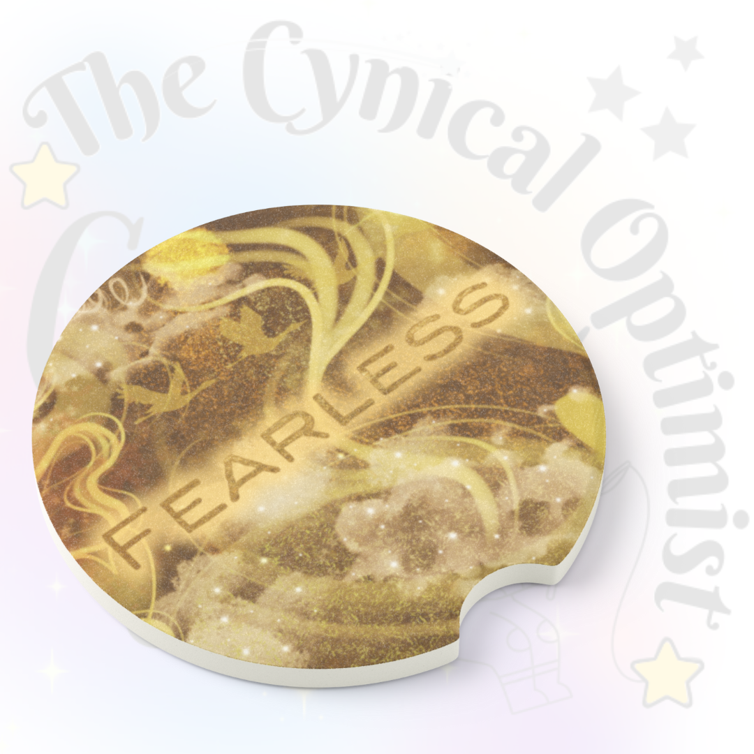 Unique Fearless Album Inspired Colorful Absorbent Soapstone Car Cup Holder Coaster - Taylor Fan Gift Idea | Free Shipping | Gold and Beige